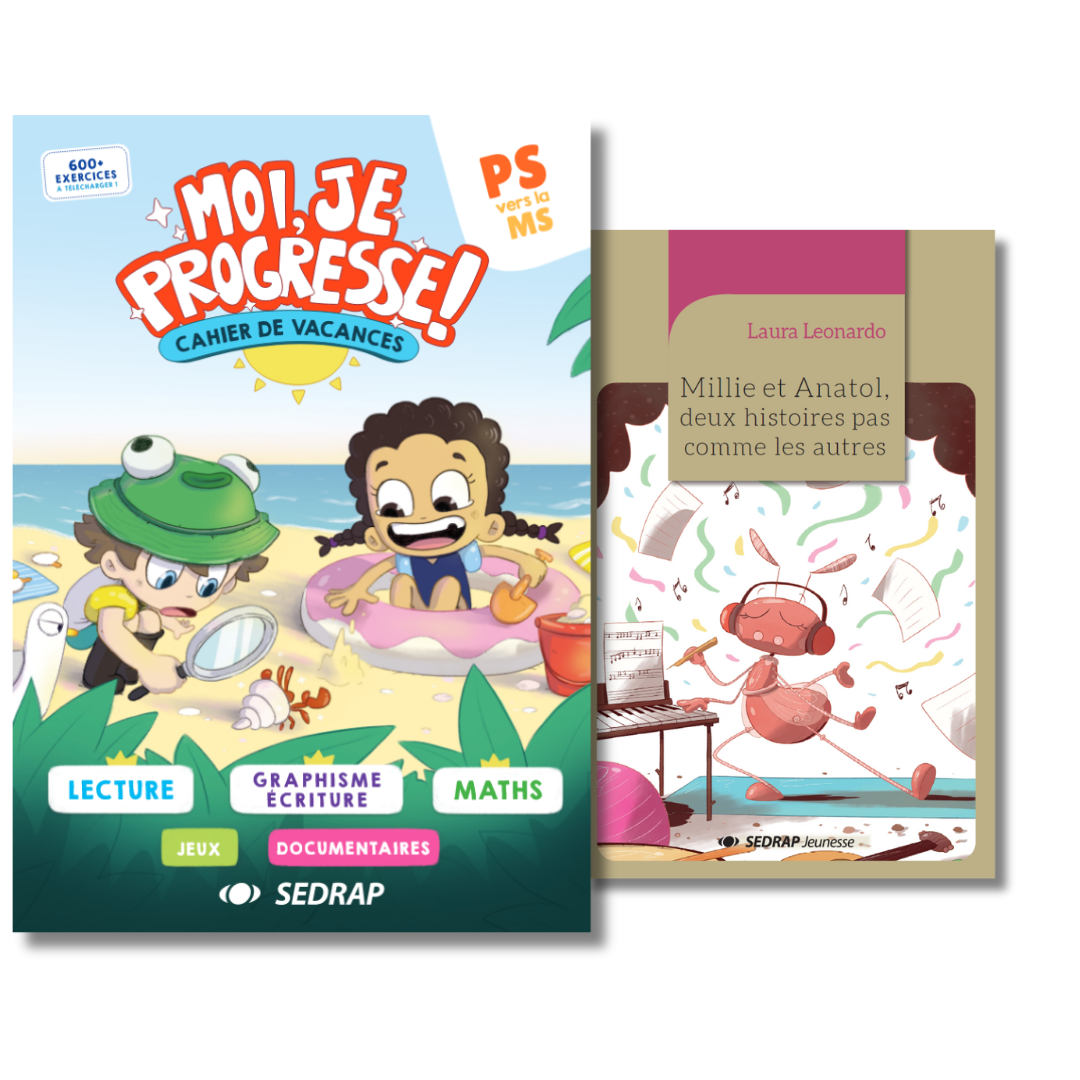Ce pack contient : Le cahier Moi, je progresse ! et un livre jeunesse sélectionné spécialement pour le niveau de l’élève.